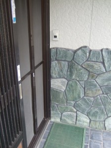 玄関戸はアルミ特有の白いサビが目立ち、床の鉄平石は数か所欠けていて、雨の日にすべるということでした。